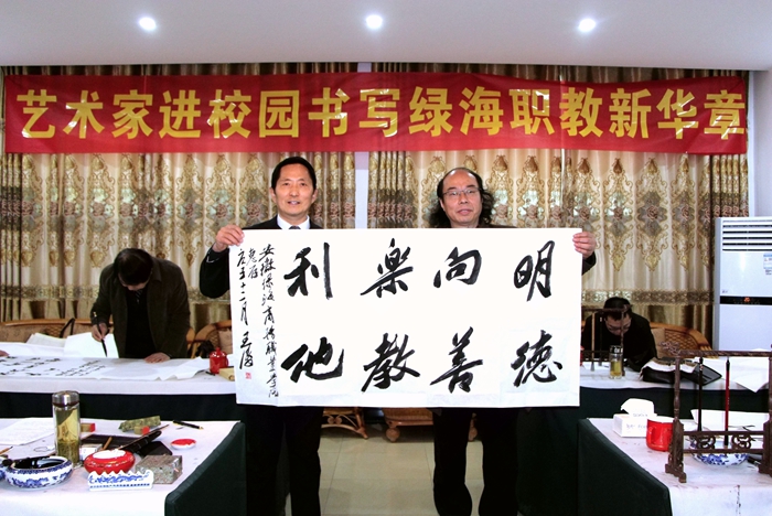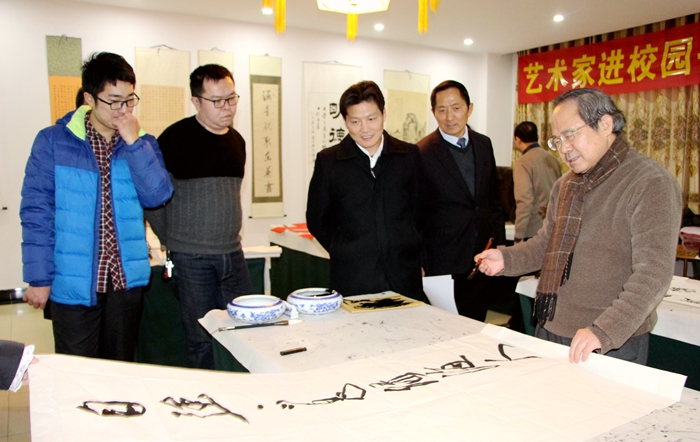 1月24日,安徽省著名书法家陈建国、王涛、邵鑫、袁文长一行莅临hth首页登录学院,参加艺术家进校园“书写hth首页登录新华章”笔会。
